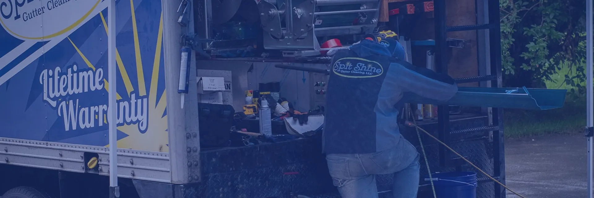 - We pull up to the job site in a box truck that carries our gutter machine for running out the custom length gutters on-site, yes it is very cool.